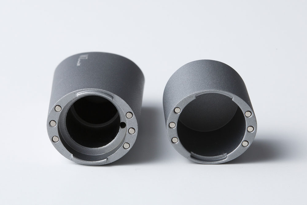 製品素材:アルミニウム合金 A6063、ネオジム磁石  表面処理:アルマイト(陽極酸化皮膜)