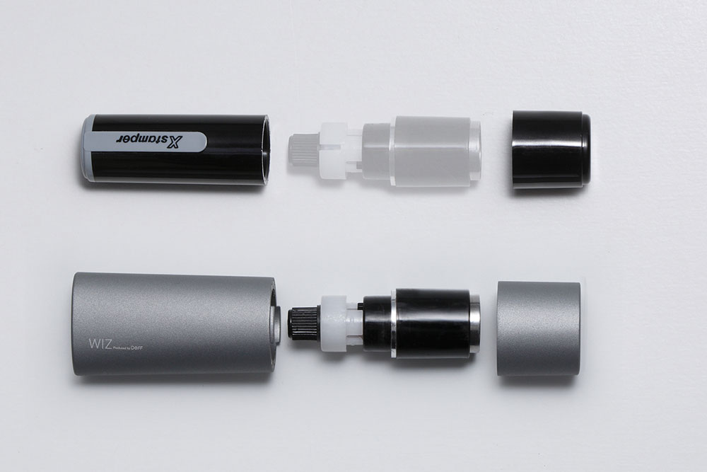 「シヤチハタ」の愛称で知られるシヤチハタ株式会社の「ネーム9」は、インキを内蔵し朱肉がなくても押印可能なオフィスで長く愛され続けているアイテムのひとつです。「WIZ Stamp Jacket for Name9 Oval」は、そんな「ネーム9」のホルダーと交換可能なアルミニウム製ジャケットで、取り出したインキカートリッジを装着することでネーム印に高級感を与えます。使いやすさとスタイリッシュさを両立した「WIZ Stamp Jacket for Name9 Oval」は、多くの人が使っている「定番」アイテムを、自分らしさを静かにアピールするステーショナリーに変えてくれます。