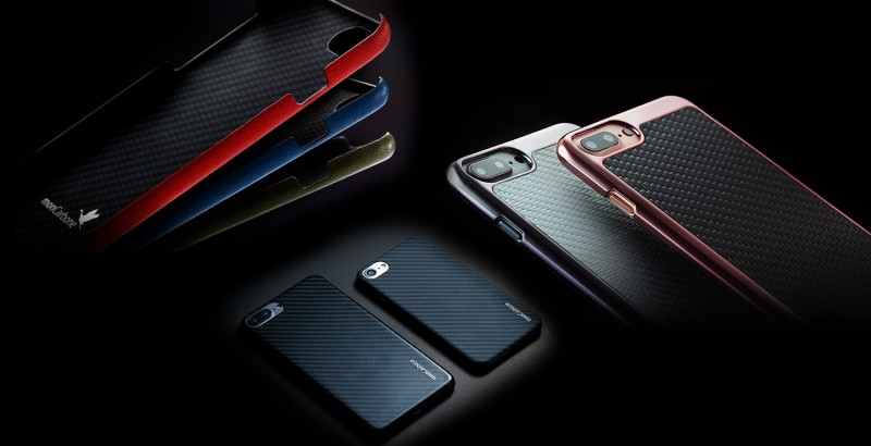 極めて軽量かつ強靭なKevlar® を採用したiPhone 7/7 Plus用ケース 「HOVERKOAT」と、新作の「HOVERSKIN」、「KHROME」をmonCarboneブランドで発売
