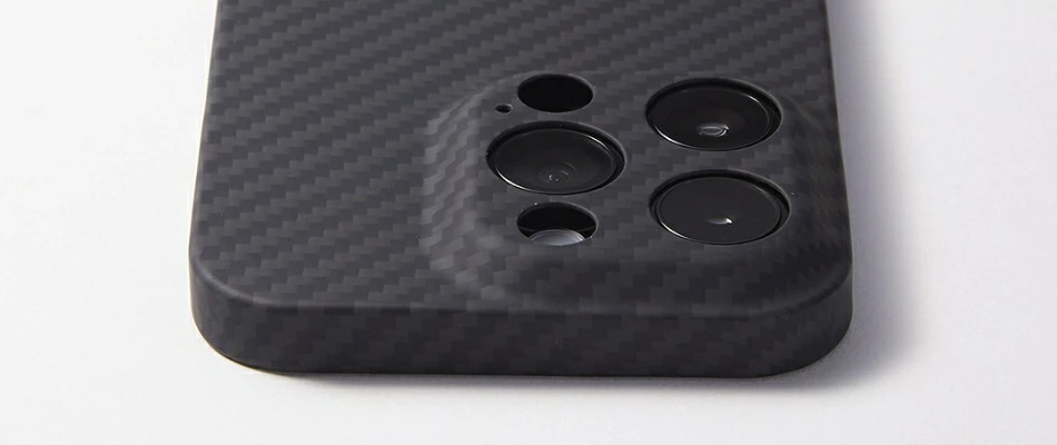 本体の素材は同質量の鋼鉄よりも5倍強く、ガラス繊維の半分の軽さの「アラミド繊維」。その中でも世界トップブランドの米国デュポン社製ケブラーを贅沢に使用しています。ケースの大きさを感じさせない約0.6mmの薄さと約10g(iPhone 14 Pro)という軽さを誇ります。アラミド繊維は4G、5Gを含むすべてのデータ通信、通話、ワイヤレス充電、ApplePay、モバイルSuicaなどへの影響はありません。