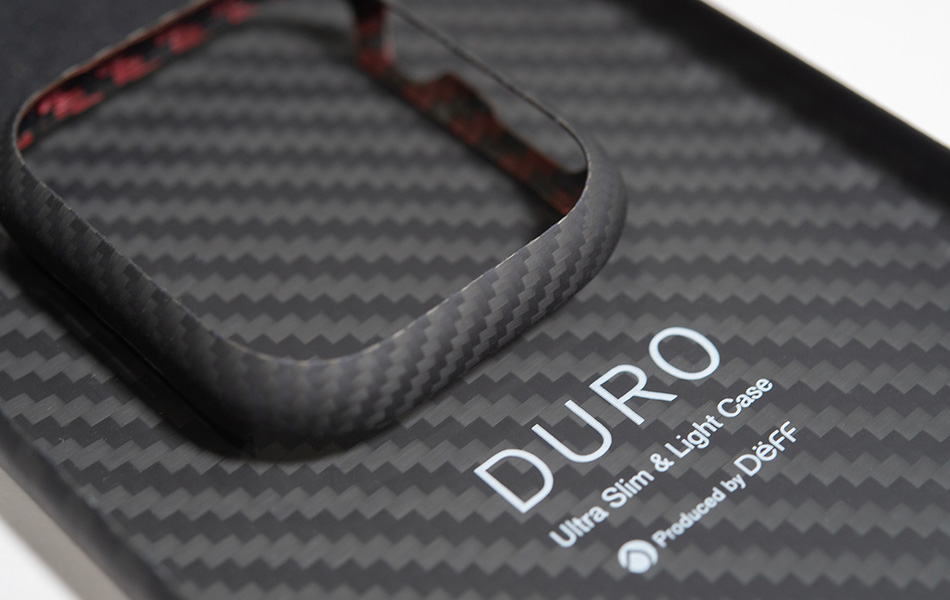ケースの厚みは約0.65mmで、重量は1円玉よりも軽い約0.6g(40mm)。DUROを装着しても負荷にはなりません。表面仕上げは傷に強く汚れの落としやすいマット仕上げの多層コーティング。ケースの裏側にはアクセントとしてマットレッド仕上げになっています。