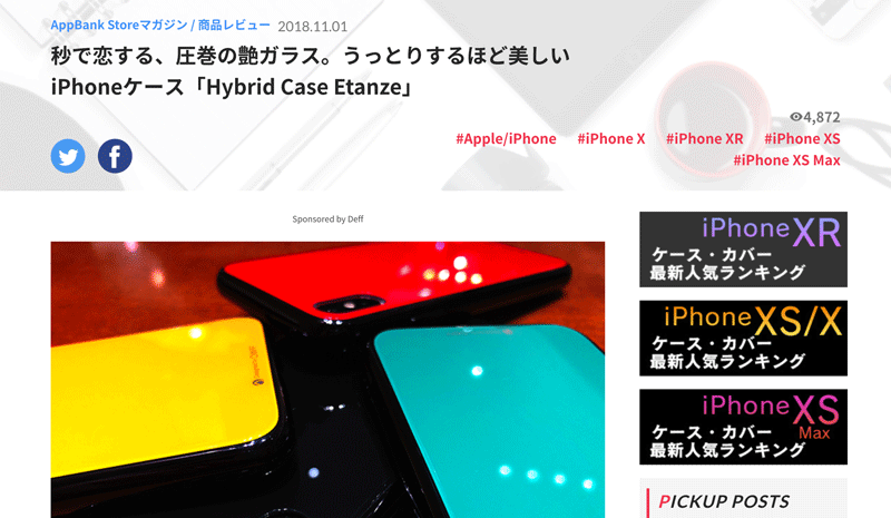 AppBank Storeの記事『秒で恋する、圧巻の艶ガラス。うっとりするほど美しいiPhoneケース「Hybrid Case Etanze」』で、「Hybrid Case Etanze for iPhone XS / XR / XS Max(ソリッドガラスタイプ)」が紹介されました。