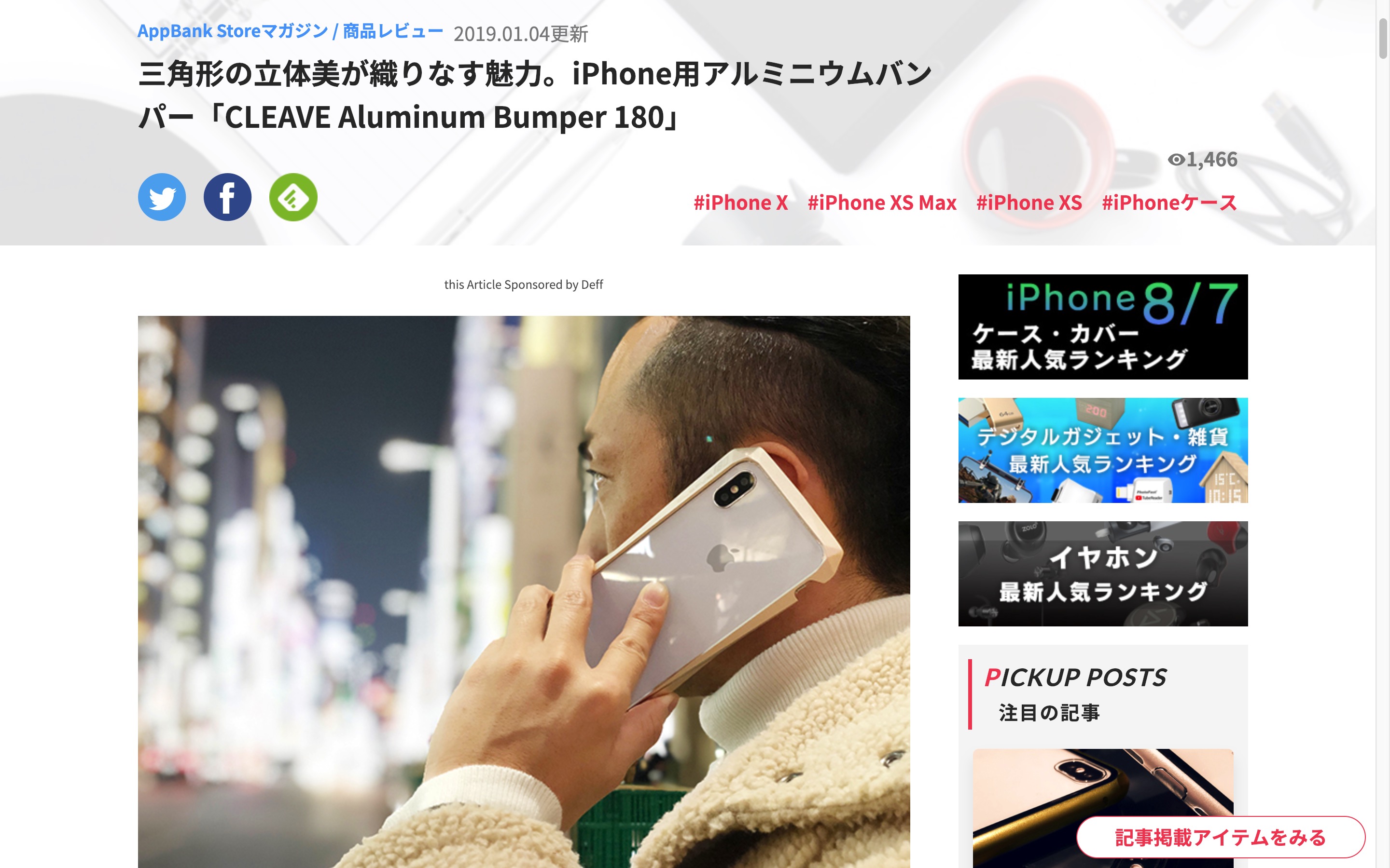 AppBank Storeマガジンの記事『三角形の立体美が織りなす魅力。iPhone用アルミニウムバンパー「CLEAVE Aluminum Bumper 180」』で、「CLEAVE Aluminum Bumper 180 for iPhone XS / X / XS MAX」が紹介されました。