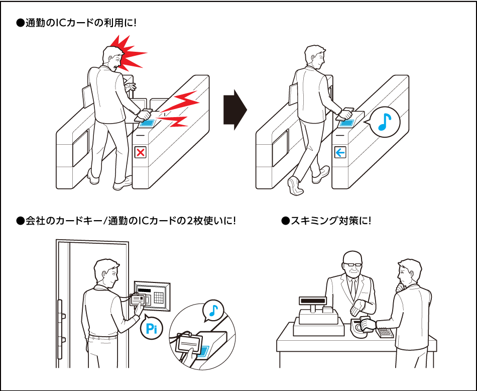 ※使用するリーダーやリーダーの設置環境、特殊なカードなど条件によっては十分な効果が発揮されず、読み取りエラーになる場合もあります