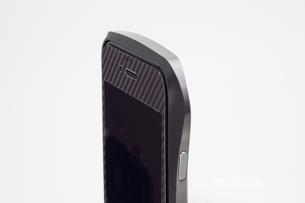 パンパーの裏側はiPhoneの形状に合わせて削り込まれており、装着時にはiPhoneのカーブに沿ってフィットします。そのため装着後でもサイズの変化が抑えられており、iPhoneが大きく持ちにくく感じることはありません。バンパーと本体が接触する部分には特殊シリコンが貼り付けられており、接触傷を防止すると共に万が一の落下の際にiPhone本体を保護します(※)。