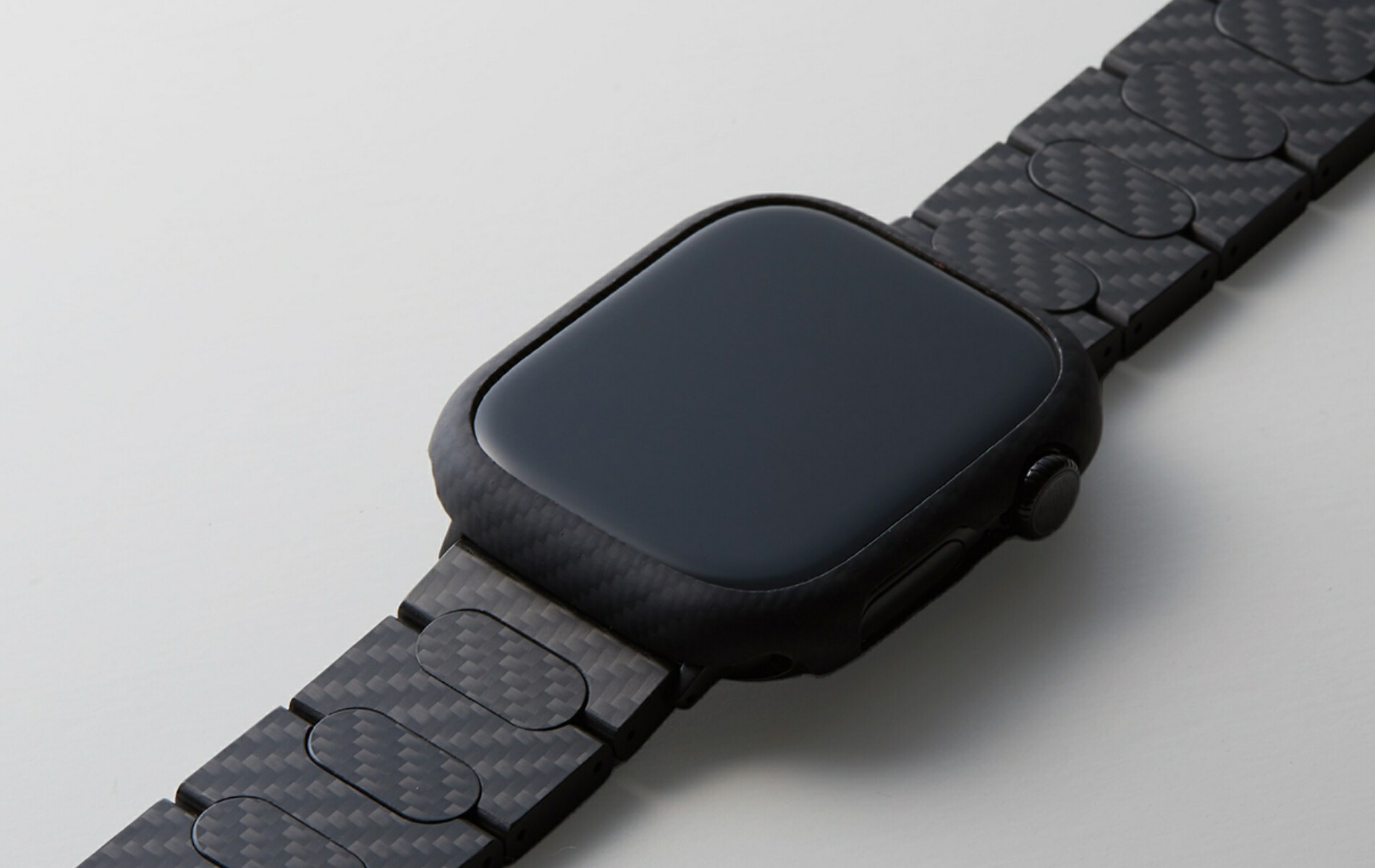 主素材には世界トップブランドの米国デュポン社製 ケブラーを贅沢に使用。小型のApple Watchとのバランスを考慮して、スマートフォン用ケースなどで使われる物よりも織目の細かい600Dシートを選択しました。こうした細かい使い分けはディーフのアラミド繊維への造詣の深さへの表れでもあります。