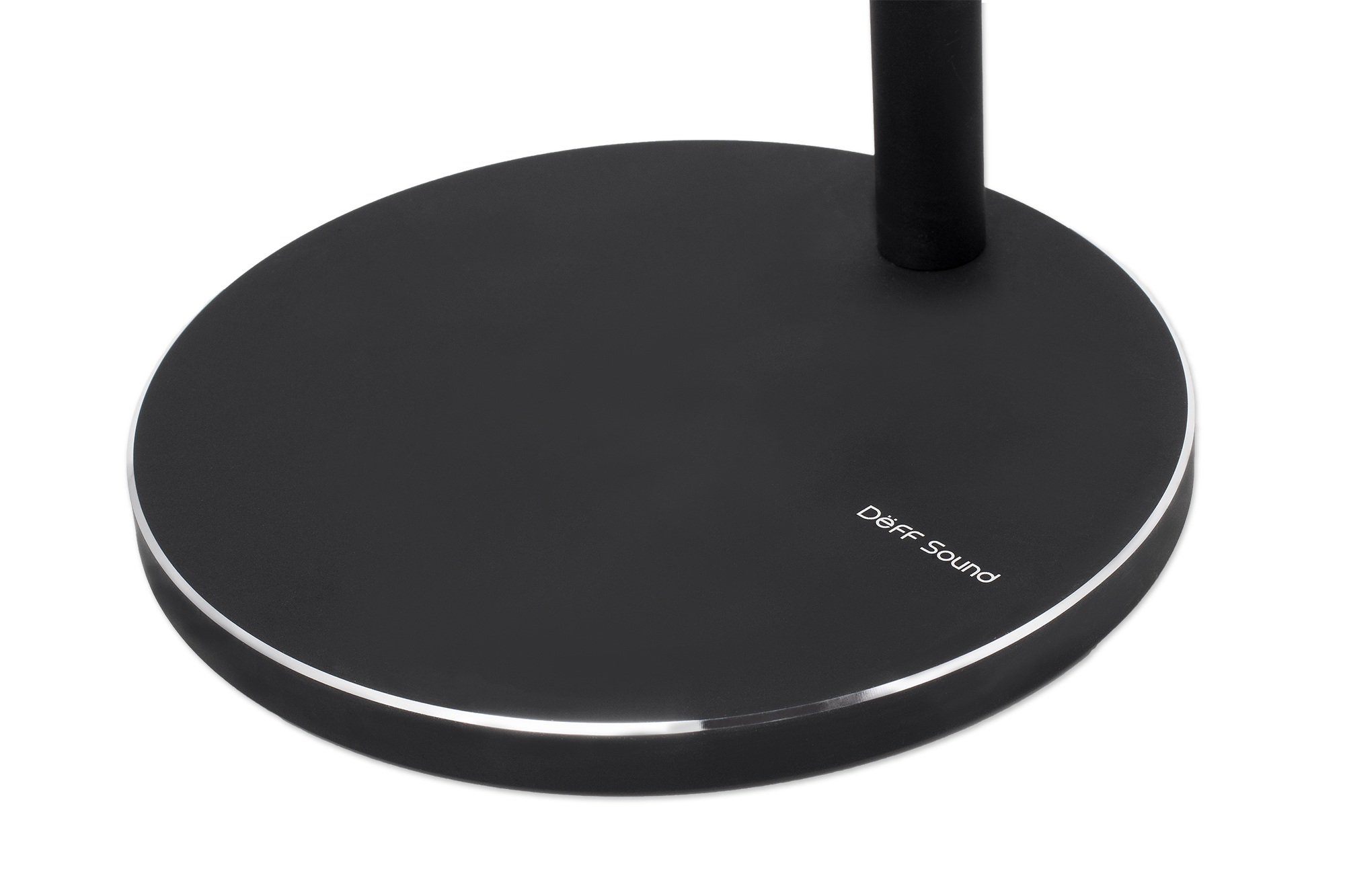 シンプルなデザインのスタンドとアームで構成されたヘッドホンスタンドは、台座とアームがアルミニウム製。マットブラックのカラーはさまざまなインテリアにもマッチします。台座の角にはダイヤモンドカット処理で、アクセントを入れてあります。