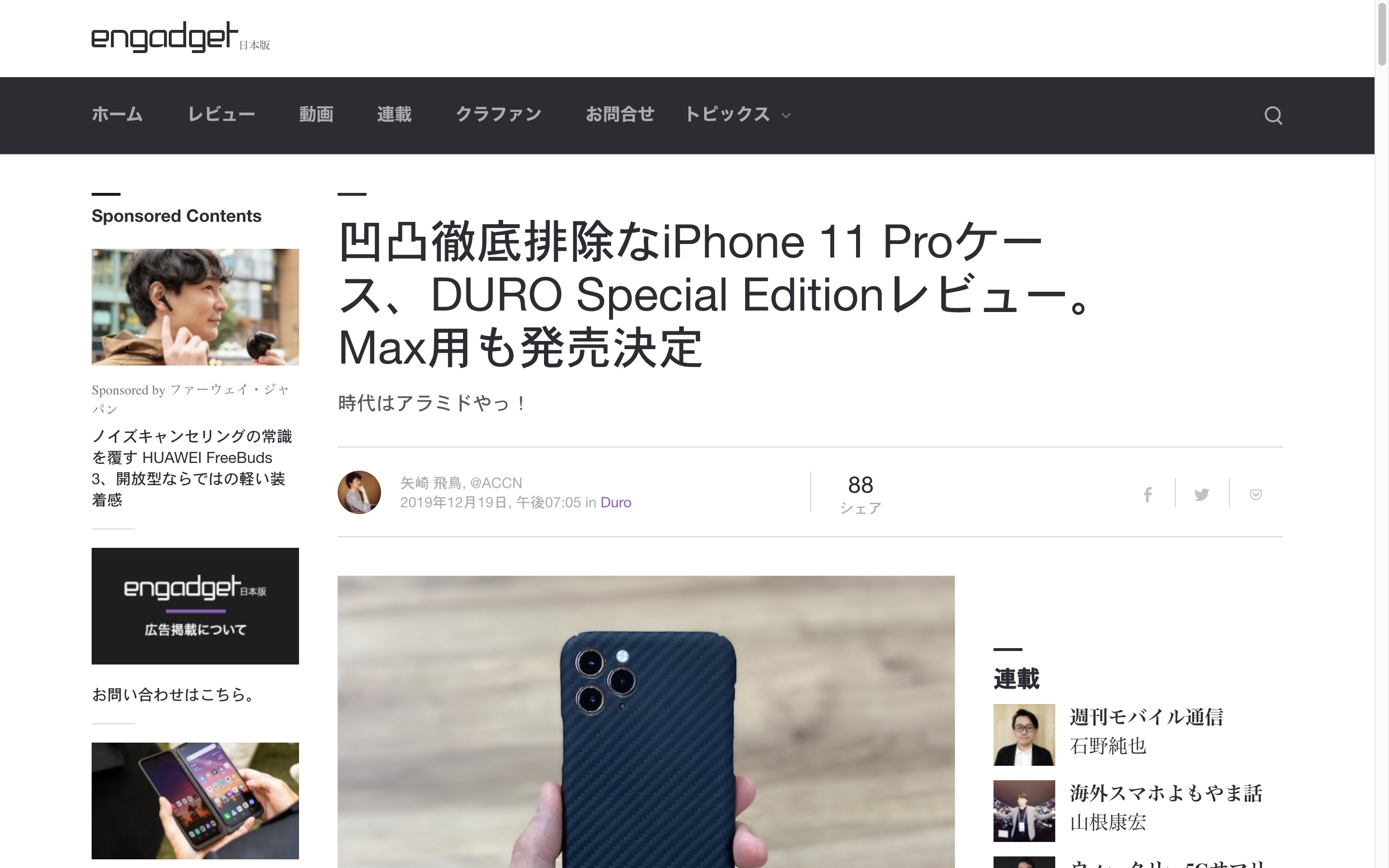 Engadget日本版で「Ultra Silm & Light Case for iPhone 11 Pro DURO Special Edition」が紹介されました 2020 1/04 お知らせ 2020.01.04 Engadget日本版の記事『凹凸徹底排除なiPhone 11 Proケース、DURO Special Editionレビュー。Max用も発売決定』で「Ultra Silm & Light Case for iPhone 11 Pro DURO Special Edition」が紹介されました。 Ultra Silm & Light Case for iPhone 11 Pro DURO Special Edition お知らせ URL Copied! iPhone Maniaで「Ultra Silm & Light Case for iPhone 11 Pro Max DURO Special Edition」が紹介されました iをありがとうで「Ultra Silm & Light Case for iPhone 11 Pro Max DURO Special Edition」が紹介されました
