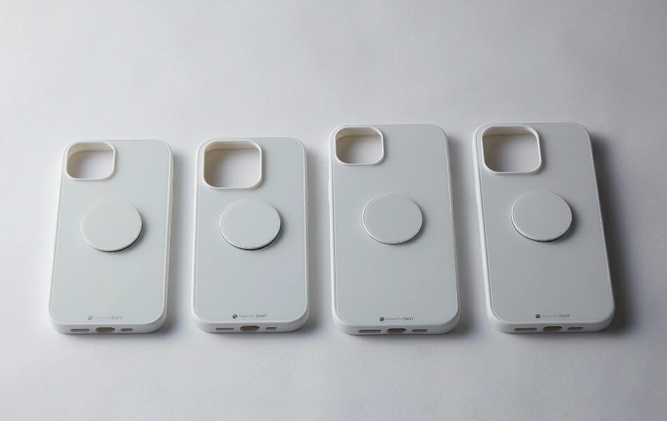 表面硬度が9H以上の化学強化ガラスの内側にプリントされているため、それぞれの色は鮮やかで艶やかな仕上がりになっています。防汚コーティングを施してあるので、いつまでも美しい色を保持します。外周を被うTPU素材は背面色合わせて白と灰色に配色しています。各ボタン操作部には特殊加工を施し、操作性を犠牲にしないようにしました。