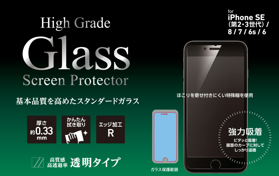 「High Grade Glass Screen Protector」はスタンダードなタイプのディスプレイ保護プレートです。ソーダライムガラスを使い厚さ0.25mmでタッチ感度も抜群。確かな品質ながら、お求め安い価格になっています。