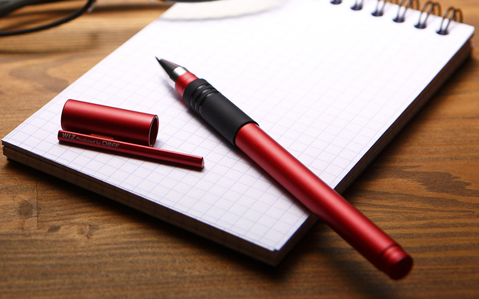 コンビニなどで手に入る「ユニボール シグノ 極細」の口金とリフィルを取り出して挿し込むだけで使えるWIZ PEN JACKET。アルマイト処理されたアルミ製のジャケットは安価な汎用ボールペンに高級感を与えてくれる。また、適度な重さになることでペン先を紙につけやすくなるだけでなく、使用時のバランスも考慮されているため、さらに描きやすいペンになる。