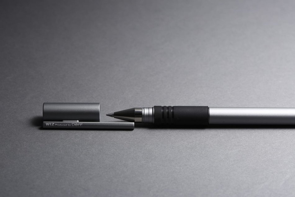 アルミ製ジャケット「WIZ PEN JACKET」は、『ユニボール シグノ 極細』の口金とリフィルを取り出して挿し込む。ペンの描き味と高級感を両立している。