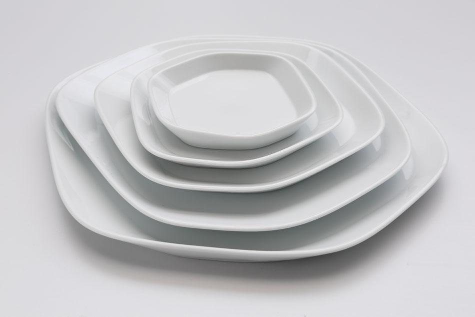 山岸隼人氏デザインの「VORONOI 」ボロノイ図形に基づいた自然な形状をもったプレートシリーズ。肥前吉田焼きデザインコンペ優秀賞。