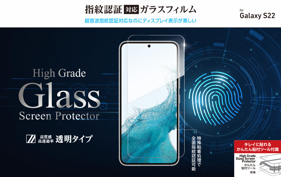 High Grade Glass Screen Protector for Galaxy S22(指紋認証対応)