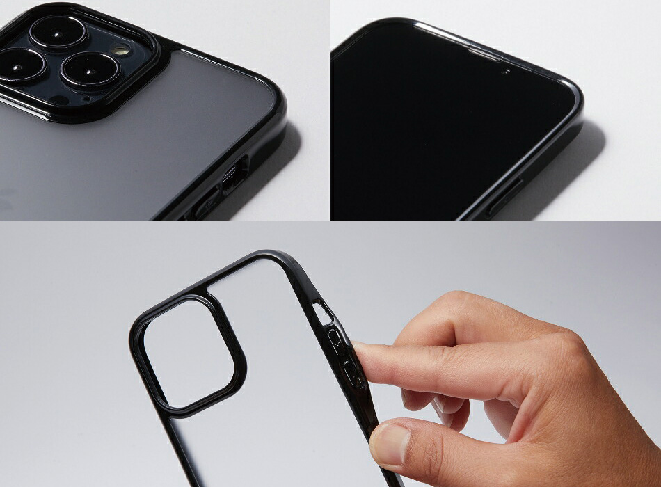 外周を被うクリアTPU素材はしなやかで艶やかな仕上げ。裏面にはマイクロドット処理を施すことでわずかな隙間が生じるため、iPhoneにぴったりと貼り付いたときに生じる「にじみや縞模様」を防いでいます。背面には表面硬度9H以上の化学強化ガラスを採用。表側には汚れが付きにくく付いても落としやすい特殊コーティングを塗布しました。ガラスは万が一割れた際に破片が飛び散らないよう飛散防止シートを全面に貼り付けた安心設計になっています。