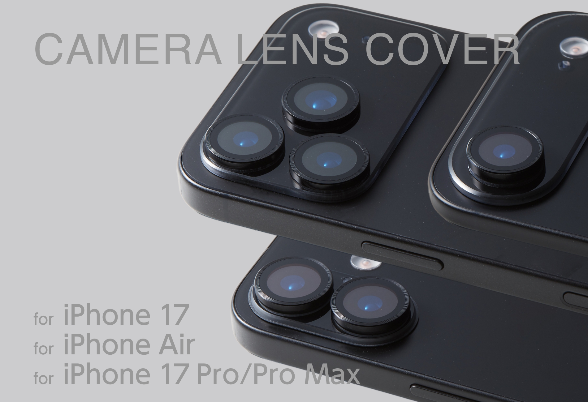 iPhone 17シリーズのカメラを守るカメラレンズカバーを発売。丈夫でシンプルなアルミフレームと高透過性のガラスを組み合わせたハイブリッドタイプでレンズと外周部をガード