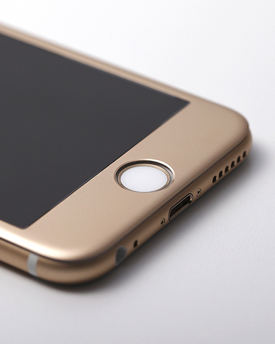 iPhone 6シリーズの液晶端面カーブにピッタリと覆い被さる形状のため、装着後はiPhoneと一体化したデザインで外観も使用感も自然な仕上がりです。前面のスピーカーや各種センサー、カメラホール、ホームボタンなどはCNCにより精密切削加工が施されています。