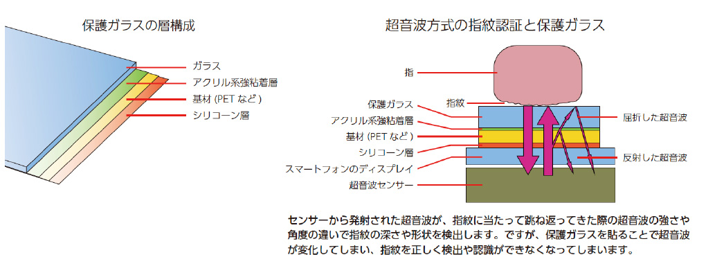 超音波方式の画面内指紋認証に対応した特殊なシリコーン粘着層を採用。保護ガラスを貼っていない状態と変わらない指紋のワンタッチ登録機能と認証精度・応答速度を実現しました。
