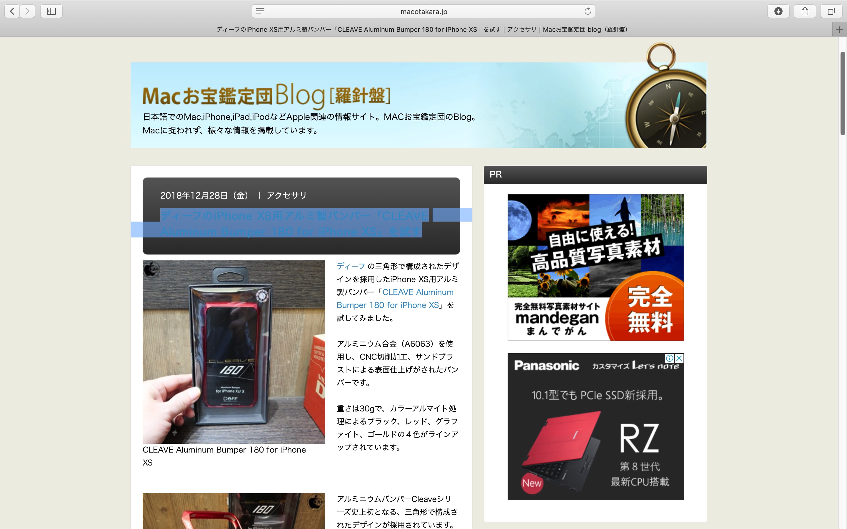 Macお宝鑑定団Blogで「CLEAVE Aluminum Bumper 180 for iPhone XS / X / XS MAX」が紹介されました