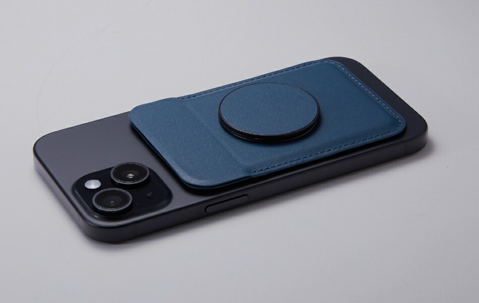 シンプルでスタリッシュな封筒タイプの後付けポケットです。スマートフォンの背面にマグネットを使って簡単に取り付けられます。iPhone12以降に装備されているMagSafeはそのまま、それ以外のiPhoneやAndroidにも、付属のメタルリングシールをスマートフォンに貼り付けることでピタッと貼り付けられます。