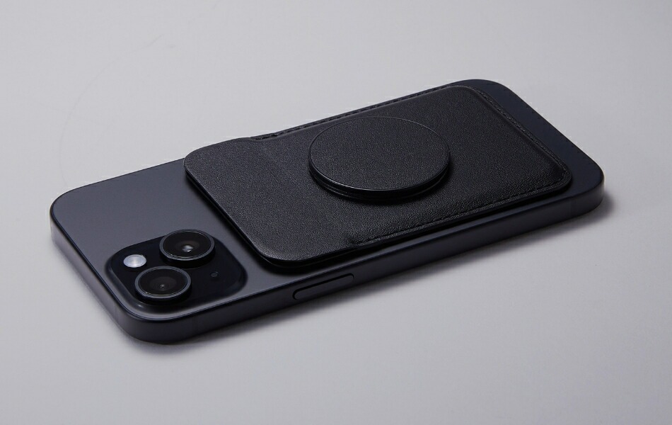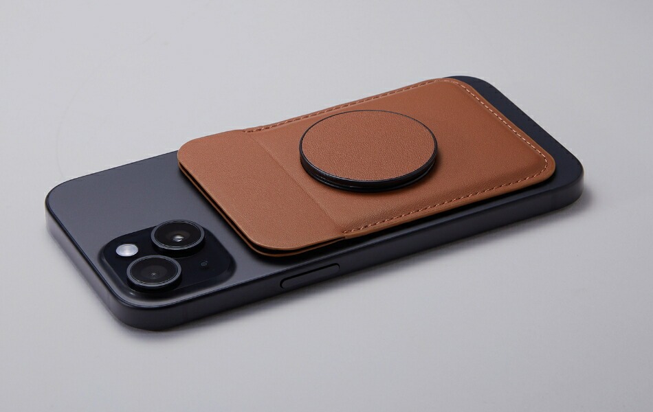 シンプルでスタリッシュな封筒タイプの後付けポケットです。スマートフォンの背面にマグネットを使って簡単に取り付けられます。iPhone12以降に装備されているMagSafeはそのまま、それ以外のiPhoneやAndroidにも、付属のメタルリングシールをスマートフォンに貼り付けることでピタッと貼り付けられます。