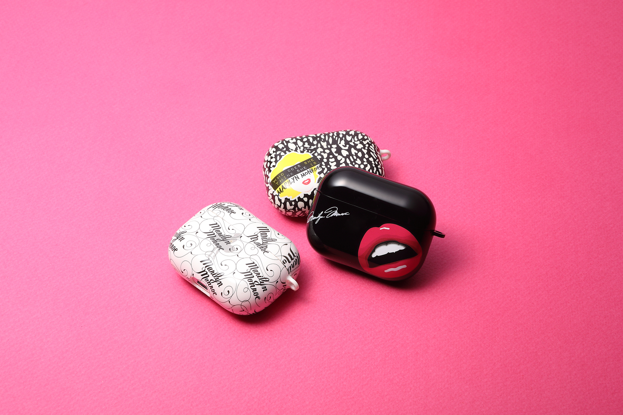 第1弾は「Deffワイヤレス充電トレー」と「Soft Case for AirPods Pro」。2021年に世界的にも権威のあるiFデザイン賞を受賞した、15W対応ワイヤレス充電器「Deffワイヤレス充電トレー」は、ワイヤレス充電の国際標準規格であるQi(チー)認証を取得した製品です。軽量薄型で直感的に置くだけで確実にスマートフォンを充電できます。表面のPUレザーにはシンプルなロゴやひと目でマリリン・モンローとわかるアイコニックなリップを大胆にデザインしました。