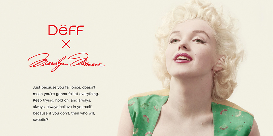存命なら今年で95歳。没後59年になりますが、当時のハリウッドを代表する人気スターであるマリリン・モンローは、今でも色あせることなくセクシーさと美しさとシンボルとして知られています。ディーフはそんなマリリン・モンローをモチーフにコラボレーションを行い、弊社人気プロダクトに彼女をイメージしたデザインを施しました。