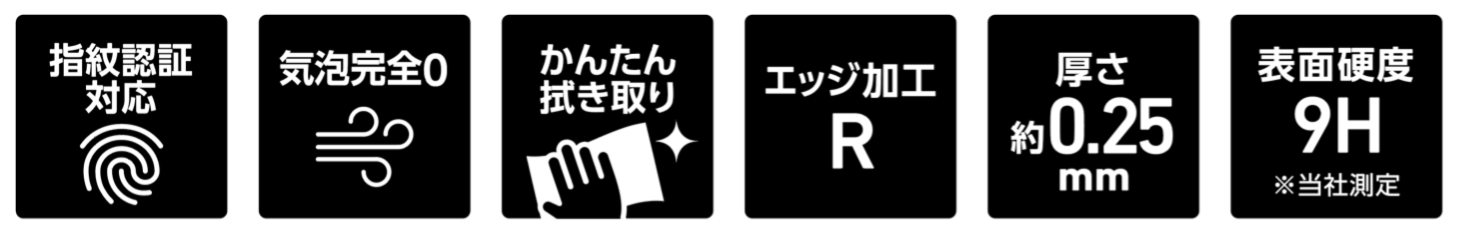 もちろん、マイクロドット処理を一切使用しない、全面糊仕様のガラスならではの美しさに加え、指滑りの良い多層防汚コーティング、スワイプ操作を阻害しない端面処理、傷の付きにくい高硬度処理が保護ガラスの安心感と使い勝手の良さを両立します。かんたん貼付ツールも付属して、どなたでも正確な位置に貼り付けられます。