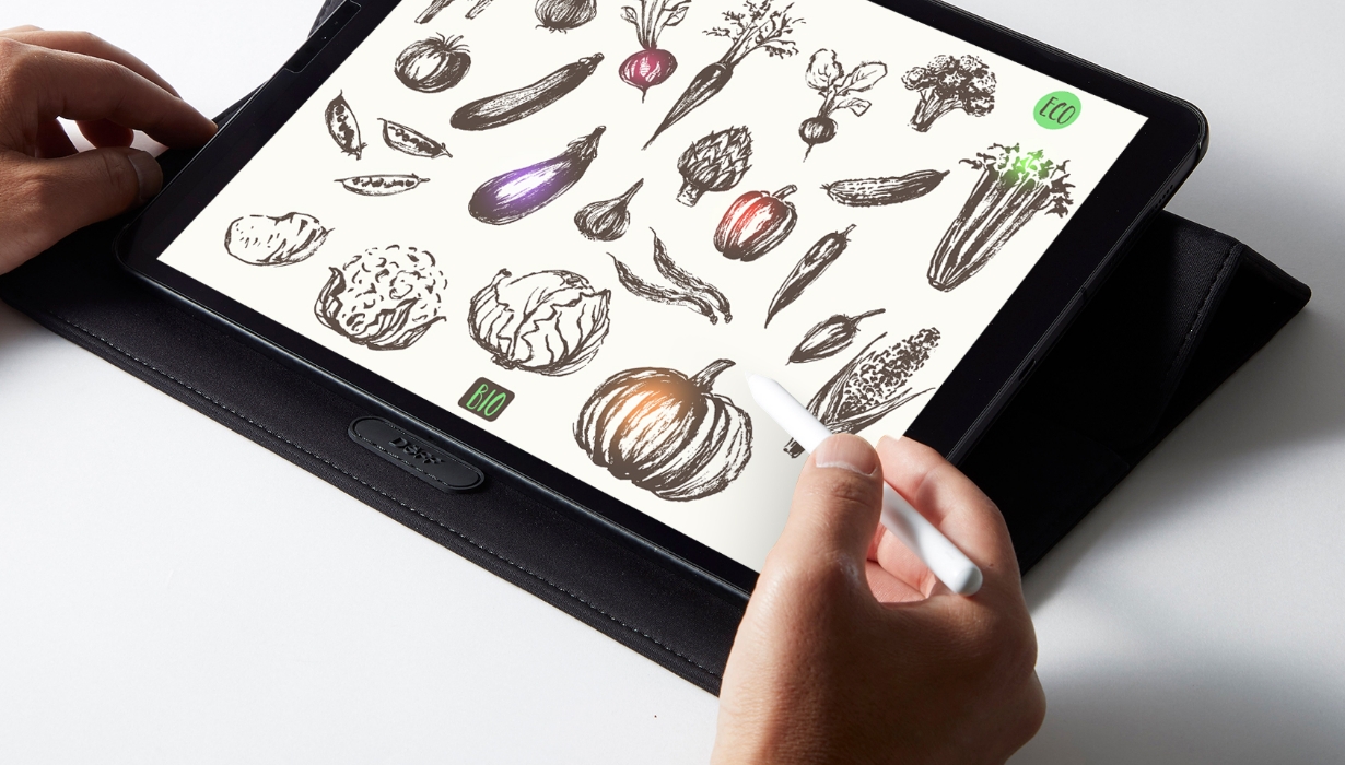 また、PC収納部のフラップは折り目を起こすと、ノートPCやタブレットを約10度の角度にリフトアップします。キー入力やペン入力のストレスを低減しますし、ノートPCでは冷却効果も期待できます。
