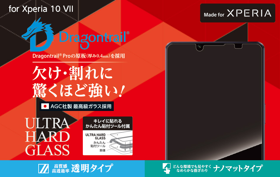 ディーフ株式会社(社長:荒木 徹、本社:東京都港区)は、ソニー株式会社製スマートフォンXperiaTM 10 VII用のディスプレイ保護スクリーンプロテクター、「High Grade Glass Screen Protector」、AGC社製トップグレードガラスの「Dragontrail® Pro」の原板をそのまま使用した超耐久保護ガラス「ULTRA HARD GLASS」を10月上旬〜中旬より販売を開始します。なお、ディーフダイレクトストアでは10月2日より販売を開始します。